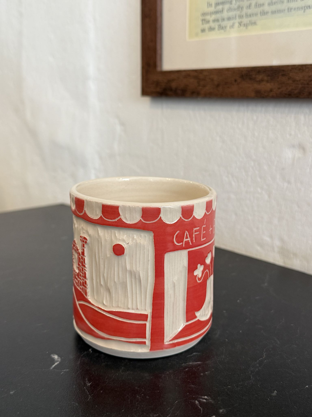 One-of-a-kind, hand-etched mugs, combining Cornish folklore with the iconic Farm + Fort windows and elements.