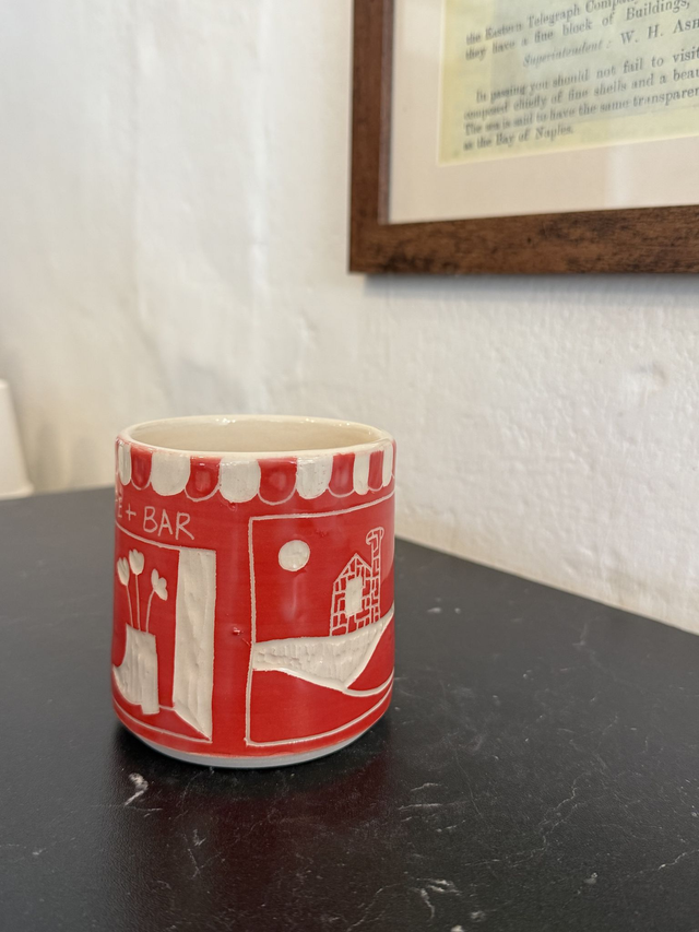 One-of-a-kind, hand-etched mugs, combining Cornish folklore with the iconic Farm + Fort windows and elements.
