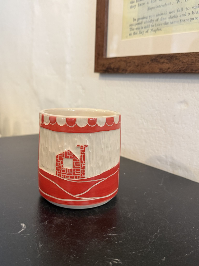 One-of-a-kind, hand-etched mugs, combining Cornish folklore with the iconic Farm + Fort windows and elements.